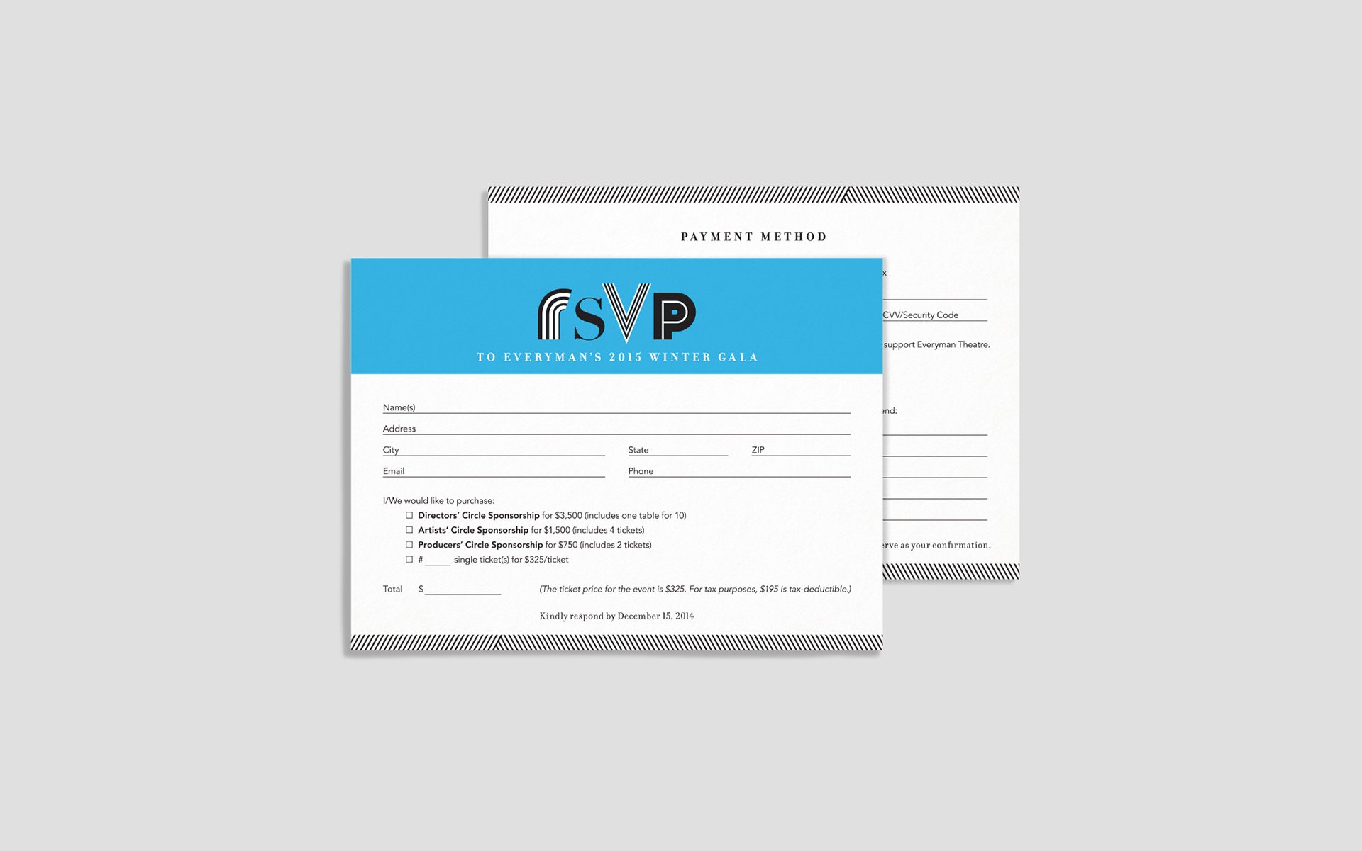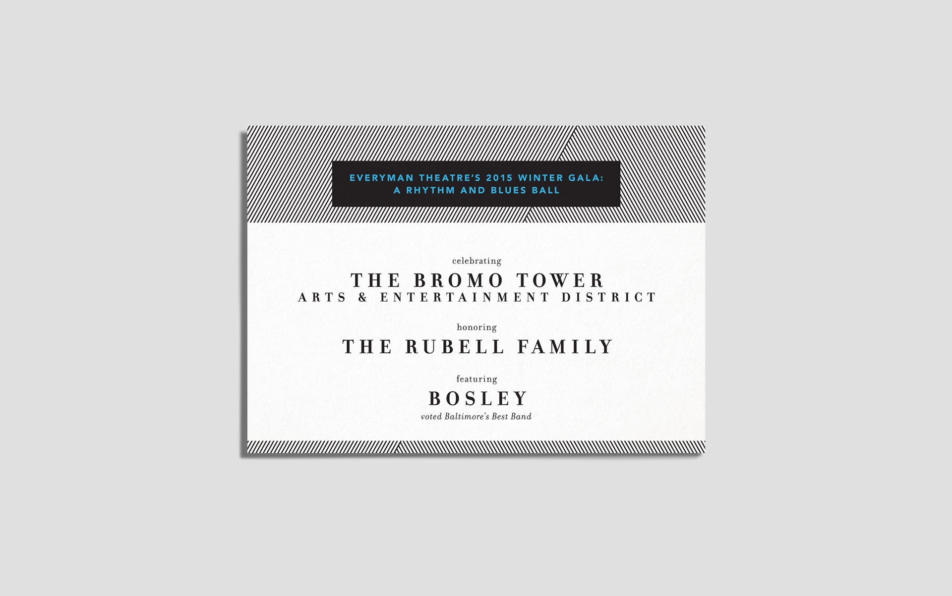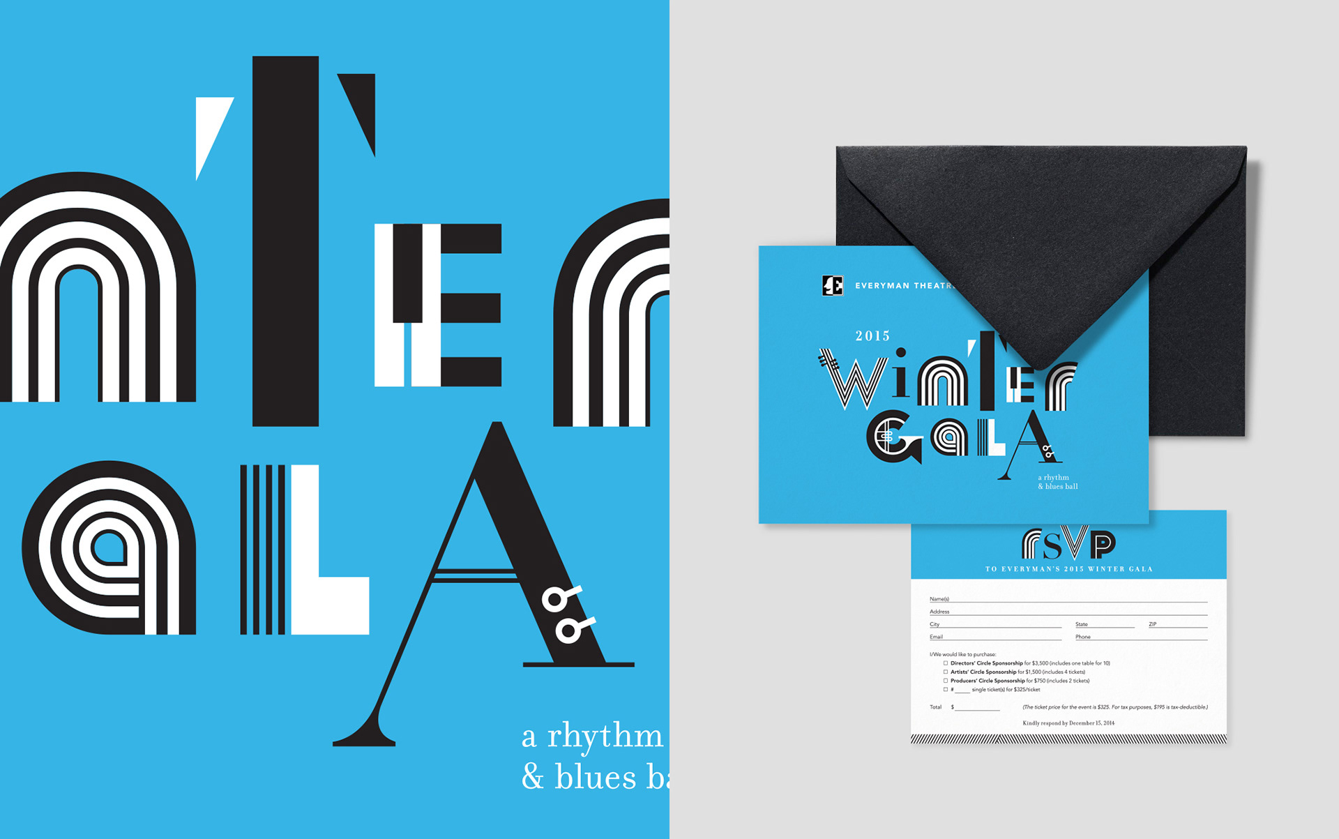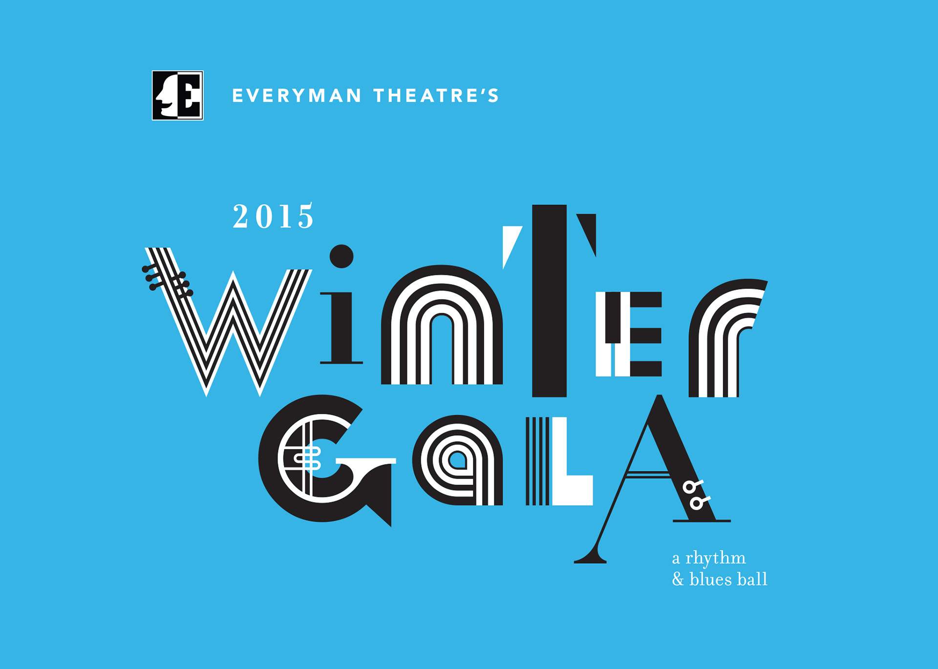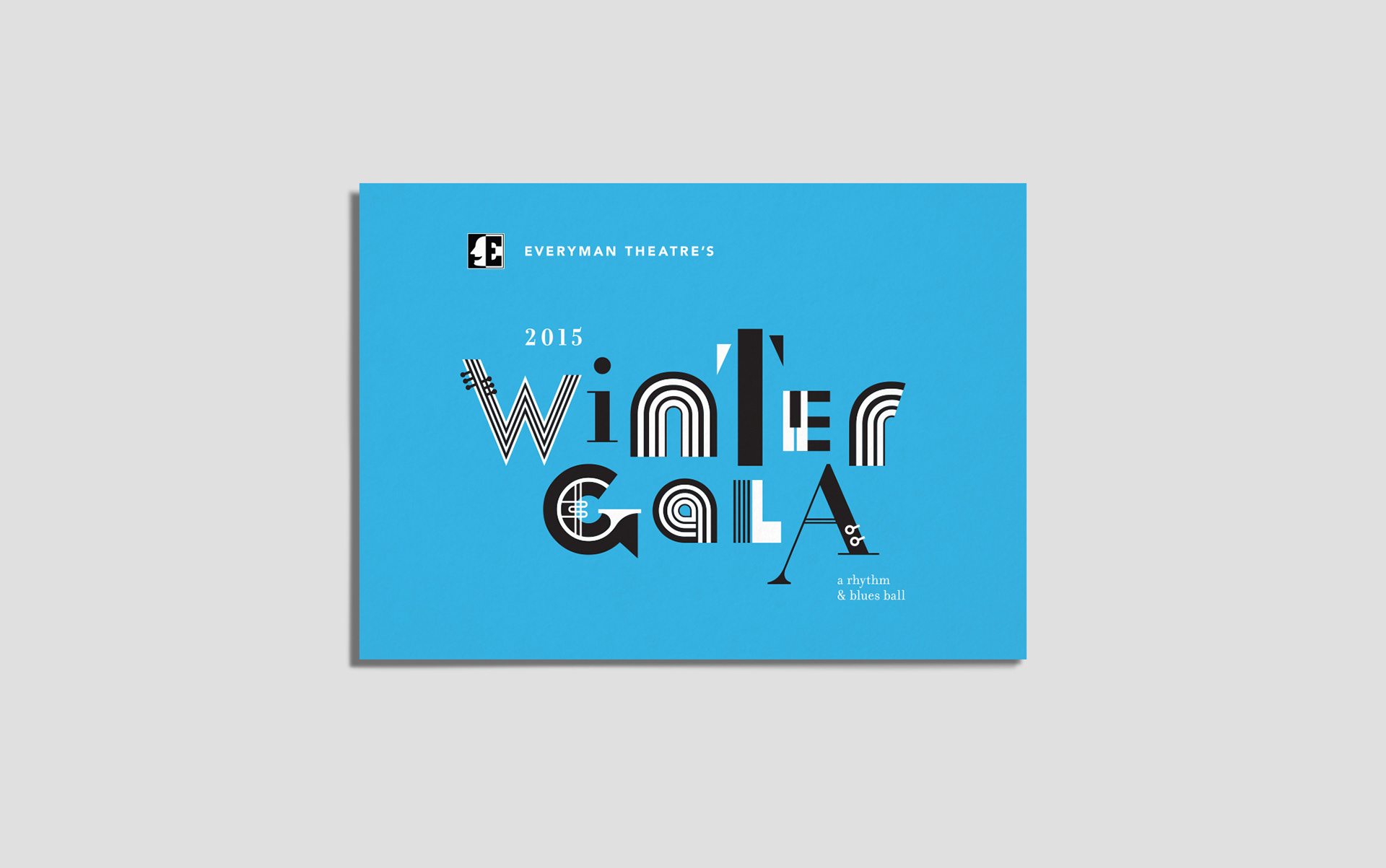 Themed gala invitation design for Everyman Theatre.