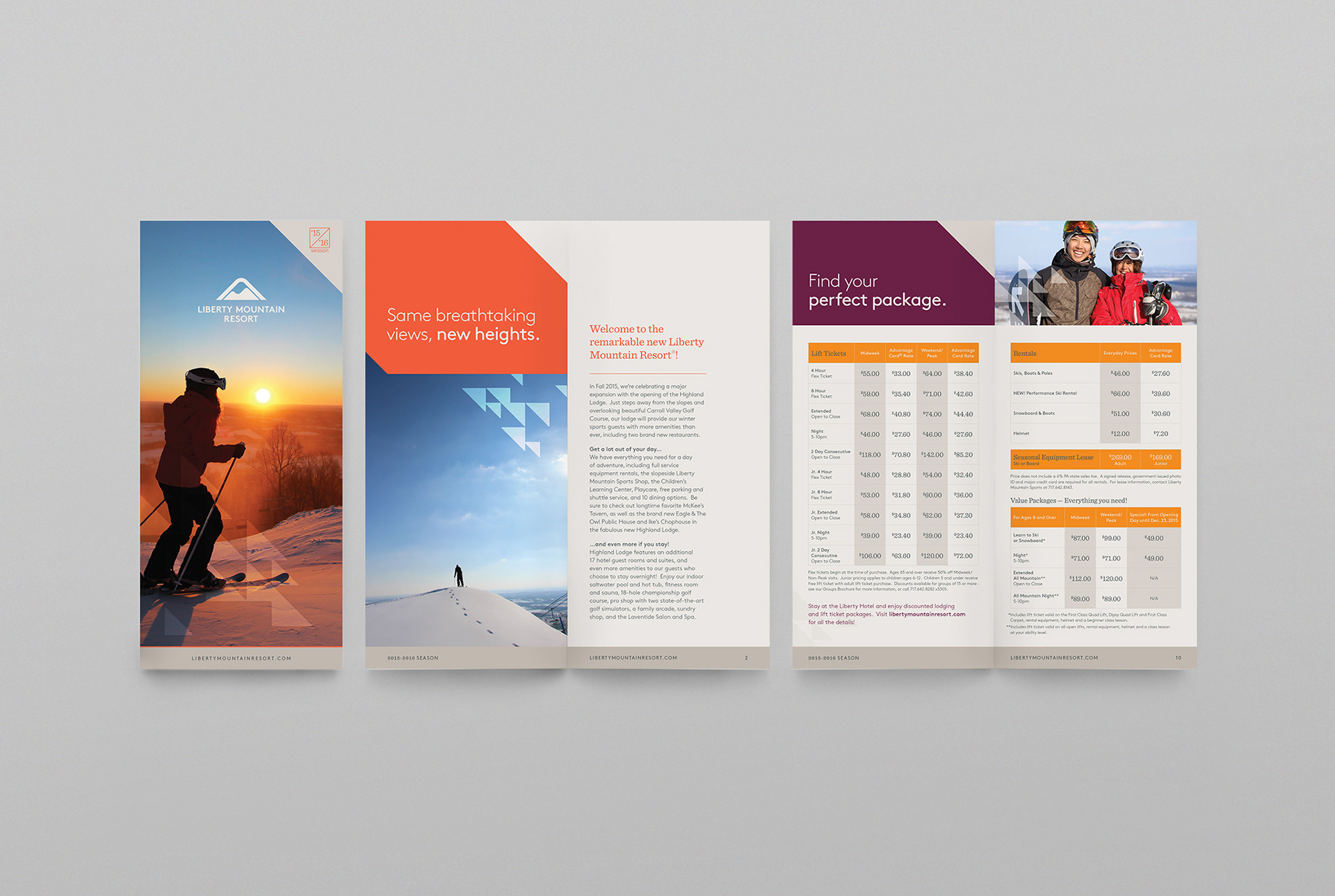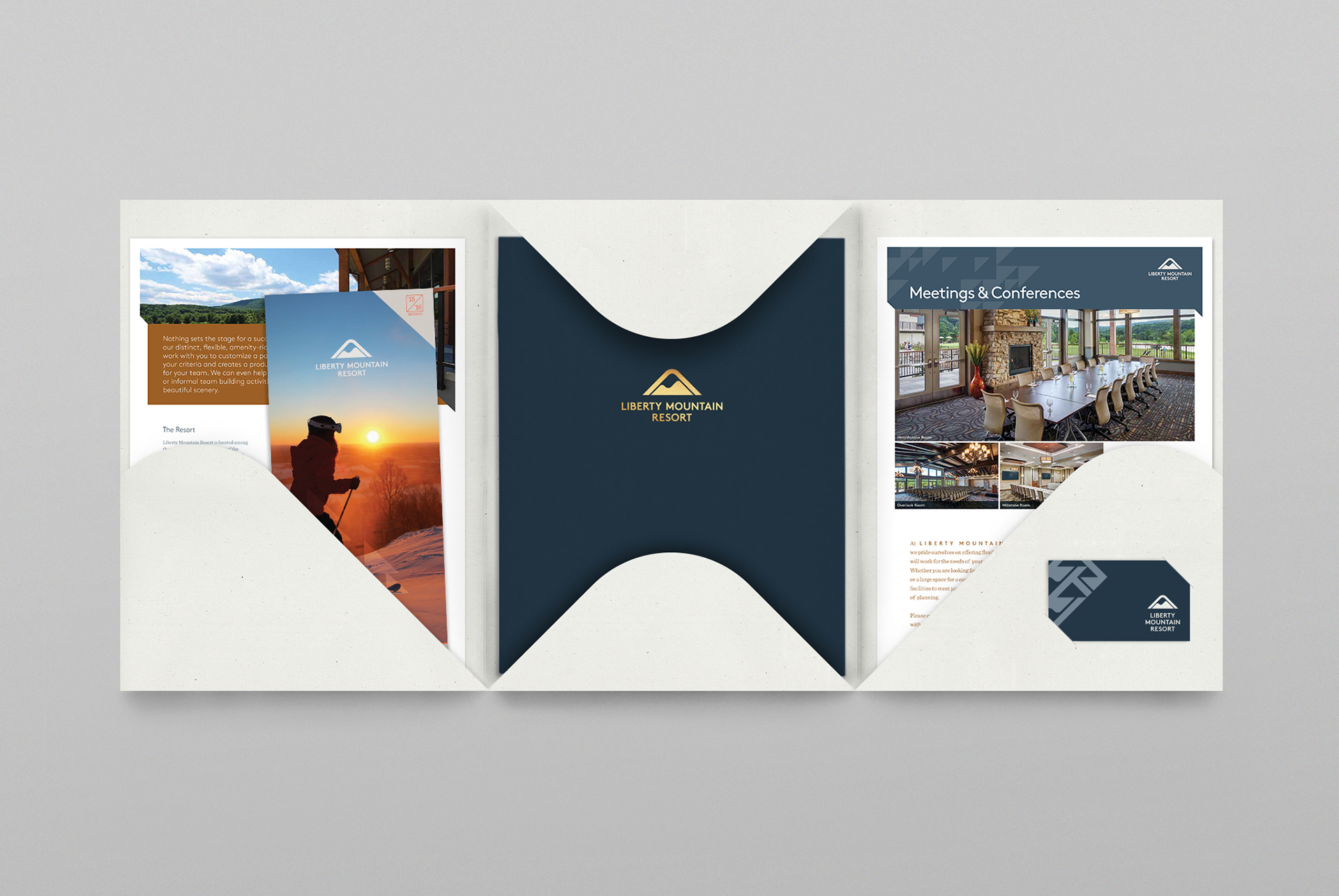 Coinciding with the debut of new high-end lodging facilities, Liberty Mountain Resort expanded their offerings from skiing and winter sports to include premium packages for both weddings and conferences. Their brand update positioned them as a four-seasons resort and is supported by a brand language that is elegant for weddings, sophisticated for conferences, inviting for golf, and active for winter sports thus making the brand as versatile as the resort itself.